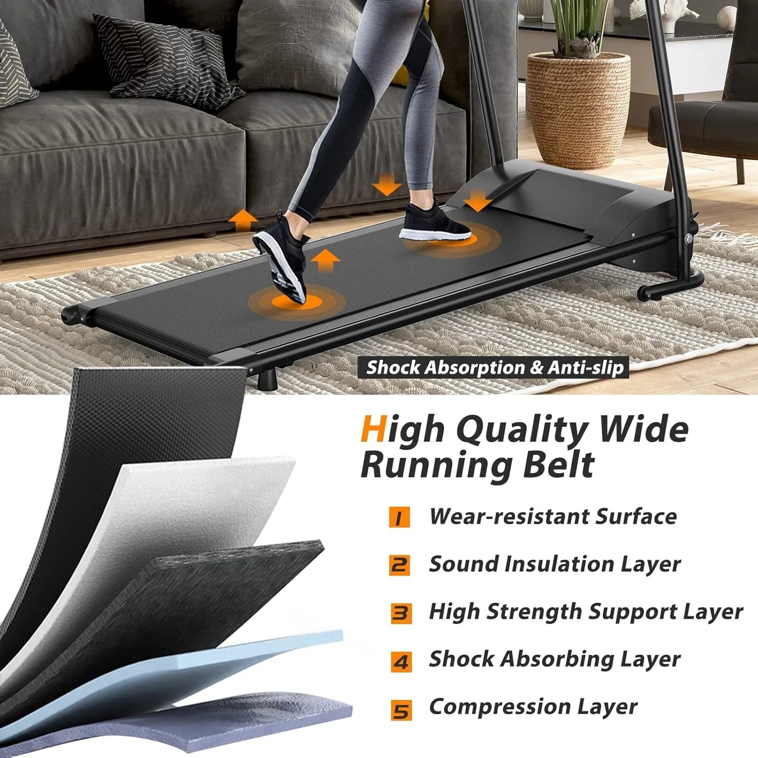 Shock-Absorbing Running Surface: The multi-layered belt includes a wear-resistant top layer, a noise-reducing layer, a high-strength support layer, and a shock-absorbing compression layer—providing a smooth, joint-friendly running experience.